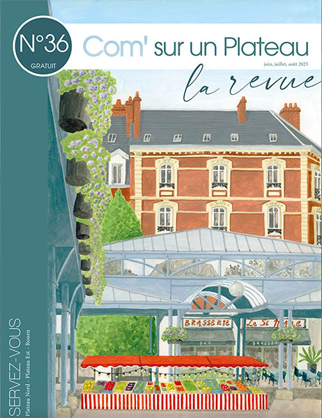 Com’ sur un plateau – depuis 2016 Depuis 2016, illustrations pour les couvertures et les articles de la revue Rouennaise Com’ sur un plateau.